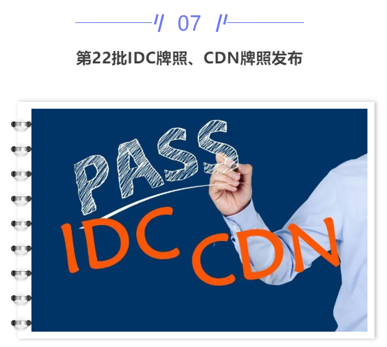 近日,工信部公布2022年第22批《中华人民共和国增值电信业务经营许可证》发放名单,其中获得IDC牌照的企业35家, 获得CDN牌照的企业21家。