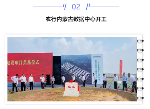 8月2日,中国农业银行内蒙古数据中心建设项目在内蒙古和林格尔新区开工奠基。项目总投资88亿元,总建筑面积为71万平米,项目全部建成后服务器装机能力达30万台。项目建设分为3期,一期总建筑面积约20.9万平方米,其中机房面积约为 12.8 万平方米,包括建设6栋机房楼、4栋动力楼、2栋备件库楼、1栋生产运维支持楼等,一期2024年底前投入使用,全部工程计划于2030年前后完成建设。