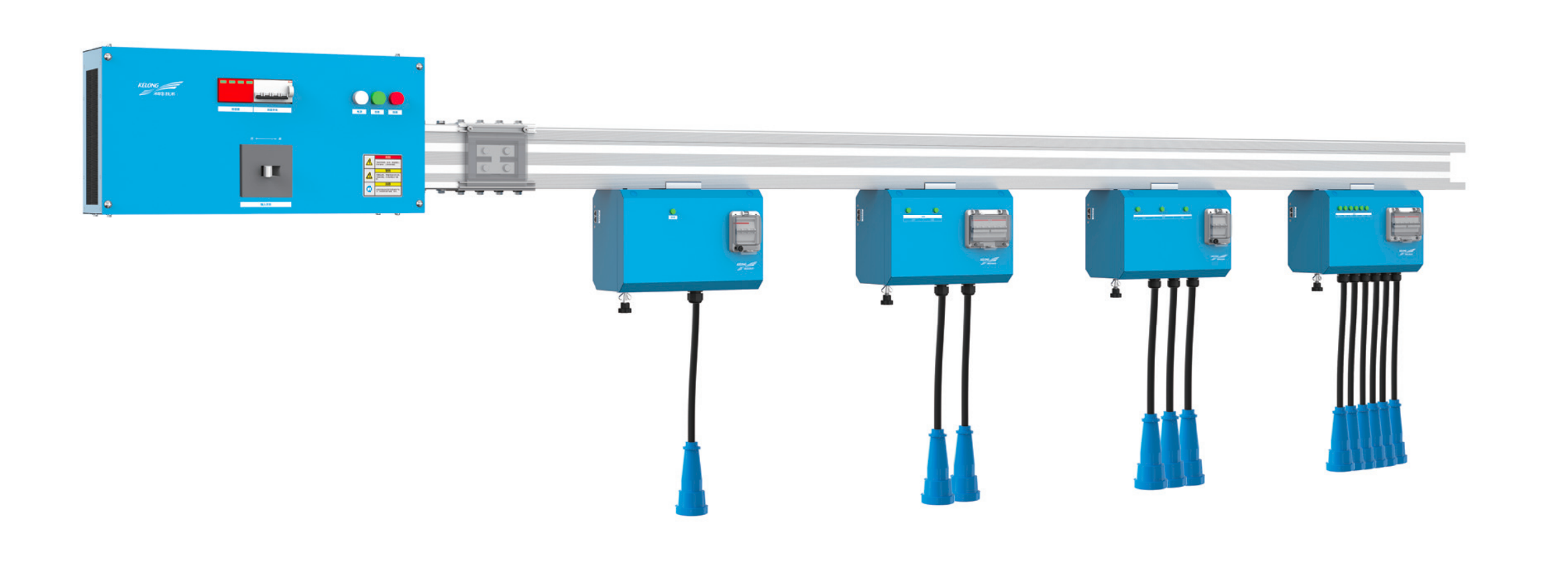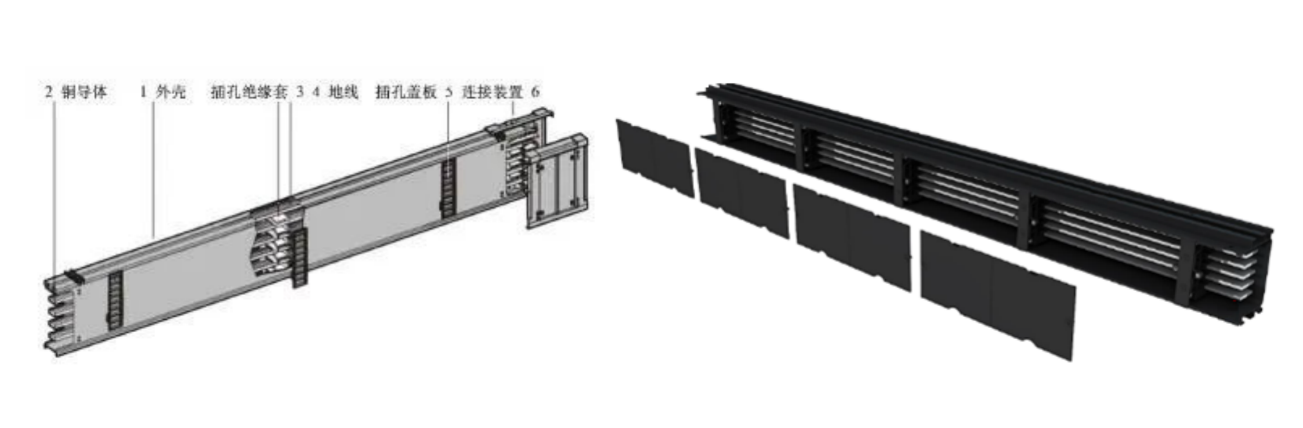 其母线槽一般采用型材设计,内部铜排与母线槽采用无夹具的固定方式,母线槽中间是一个连续中空的腔体,插接箱可以在其中任意位置进行安装,如下图所示。