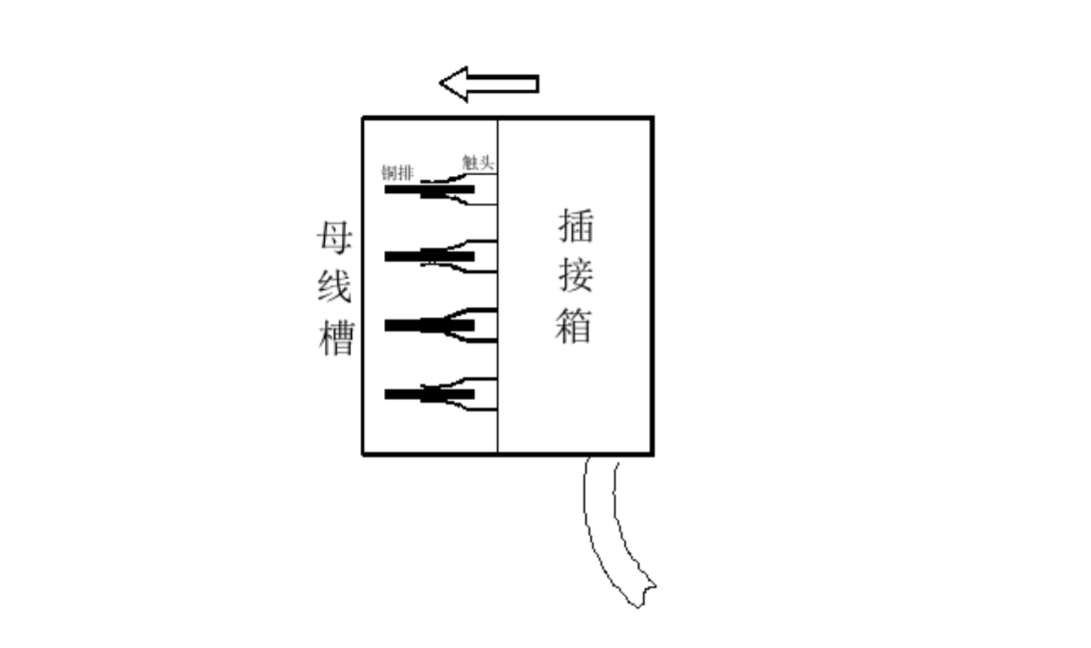 其插接箱为水平方向安装,插接箱固定在母线槽侧面。