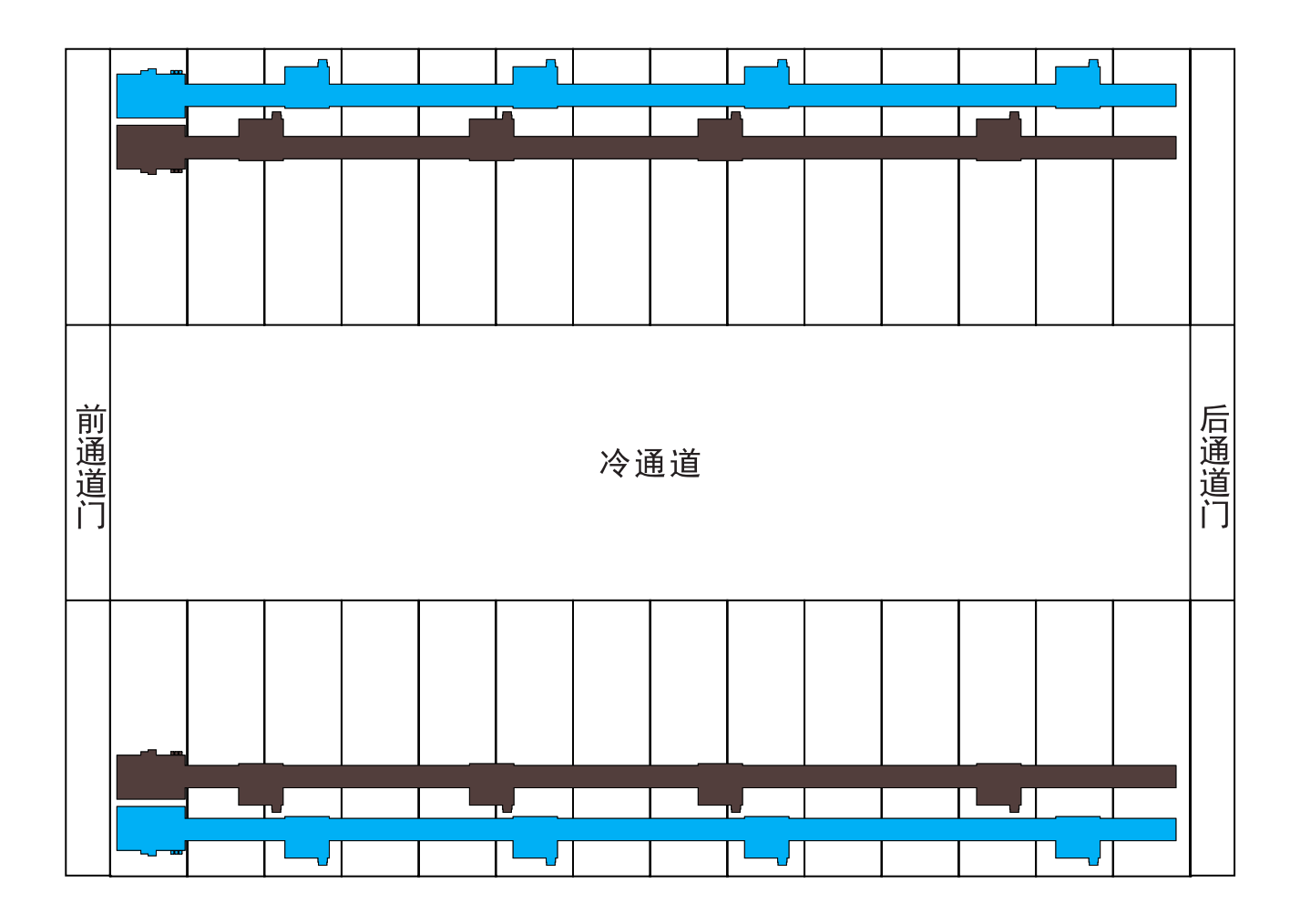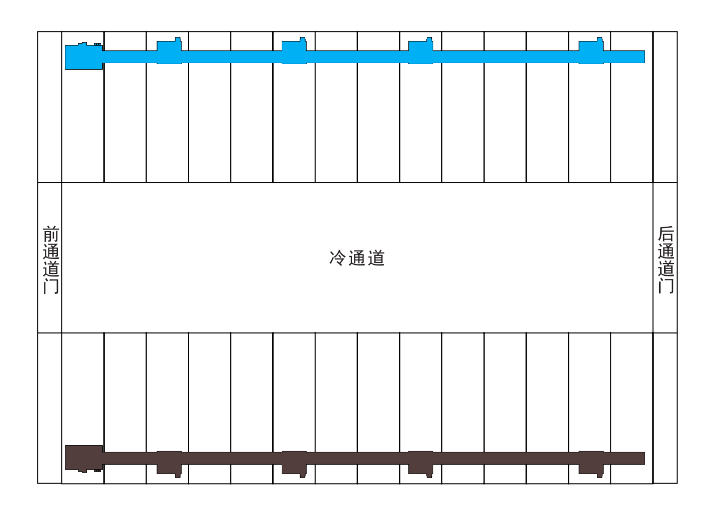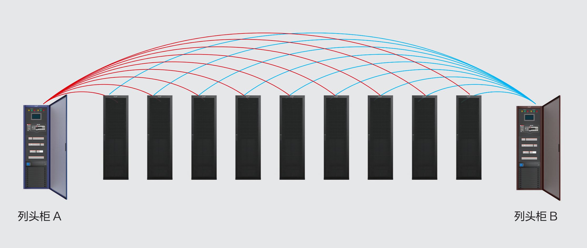 A/B路2N配置(蓝 /棕),每条含两条母线,只需给本列机柜供电。